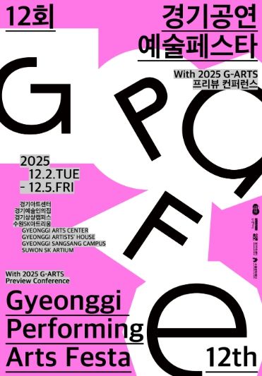 [경기경제신문] 경기문화재단은 경기도 수원 일대에서 제12회 경기공연예술페스타를 개최한다. 페스타는 2025년 12월 2일부터 5일까지 경기 예술인의 집, 경기아트센터, 경기상상캠퍼스, 수원SK아트리움 등에서 진행되며, 베스트콜렉션, 쇼케이스 데이, 공동 창·제작 쇼케이스, 피치세션, 토크세션, 워크숍 등 다양한 프로그램을 통해 경기 공연예술 생태계의 흐름과 성과를 한눈에 보여줄 예정이다. 또한 경기아트센터 주최 ‘2025 G-ARTS 프리뷰 컨퍼런스’가 동시 개최되며, 보다 풍성한 전문 교류의 장을 마련한다.