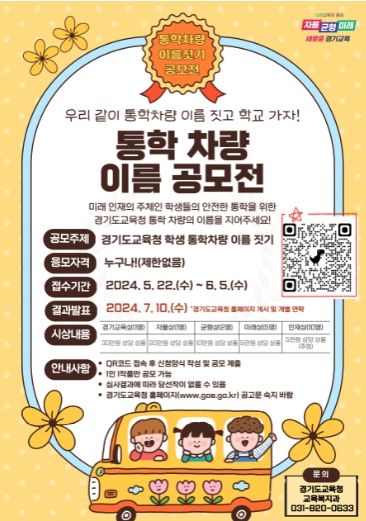 [경기경제신문] 경기도교육청이 5월 22일부터 6월 5일까지 ‘통학차량 이름짓기’ 공모전을 개최한다.