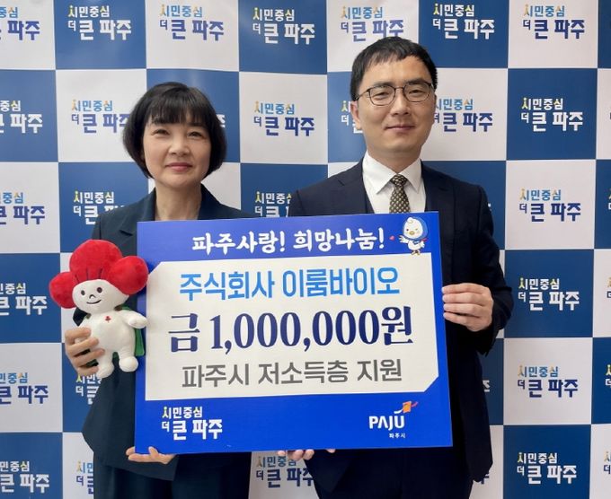 [경기경제신문] 파주시는 28일 ‘주식회사 이룸바이오’로부터 저소득 취약계층을 위한 이웃돕기 성금 100만 원을 전달받았다고 밝혔다.