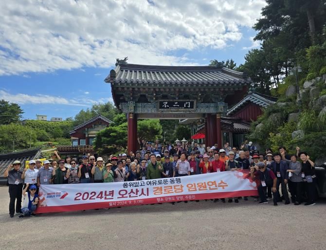 [경기경제신문] 오산시는 지난 3일 강원도 양양군, 강릉시 주문진 일원에서 관내 경로당 회장과 대한노인회 오산시지회 임원을 대상으로 ‘품위 있고 여유로운 동행’이라는 테마의 경로당 임원 연수를 개최했다.