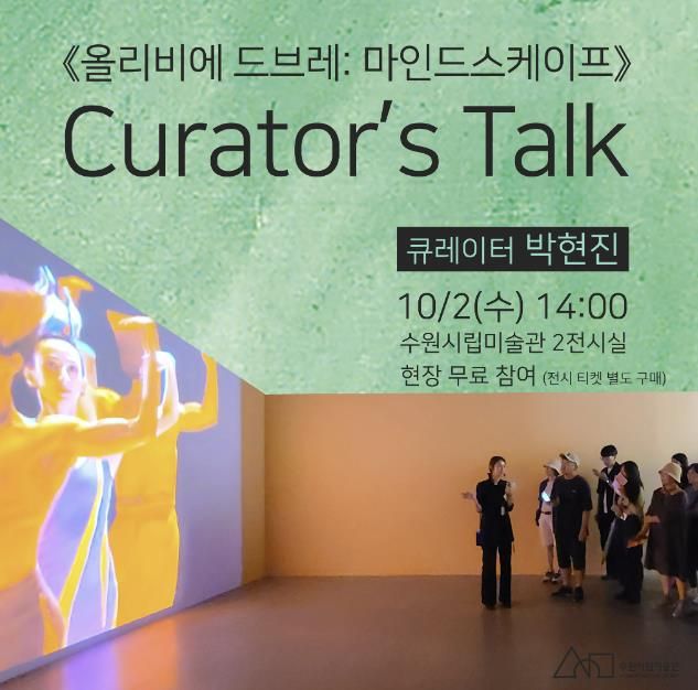 서정 추상의 대가인 프랑스 출신 작가 올리비에 드브레의 국내 최대 규모 개인전인 《올리비에 드브레: 마인드스케이프》를 기획한 박현진 학예연구사와 함께 이야기하는 시간을 마련했다. 현재 개최 중인 전시 소개, 전시 기획 과정 등 전시 뒷이야기와 큐레이터의 업무 등에 대해 이야기하고 질의응답 순서로 이어진다. 마무리로 큐레이터와 함께 《올리비에 드브레: 마인드스케이프》전시 투어가 진행된다. 수원시립미술관 2전시실에서 진행되는 큐레이터 토크는 별도의 예약 없이 관람권 구매 후 누구나 참여 가능하다.