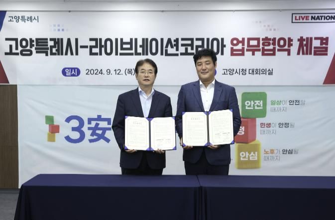 또한 지난 9월에는 공연 기획사 ㈜라이브네이션코리아와 문화예술공연 동반 성장을 위한 업무 협약을 체결했다. 고양시와 라이브네이션코리아는 ▲세계적 스타 내한공연 등 대형 공연 고양시 개최 ▲고양시를 글로벌 공연거점도시로 육성하기 위한 협력 ▲고양시 공연 인프라 개선 위한 자문과 투자 ▲대관 및 행사 개최 관련 행정 편의 제공 등 다양한 분야에서 협력하기로 했다.
