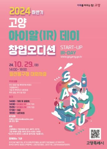 [경기경제신문] 고양특례시(시장 이동환)는 오는 10월 29일 일산동구청 대회의실에서 창업오디션‘2024 하반기 고양 아이알(IR)데이’를 개최한다고 밝혔다.