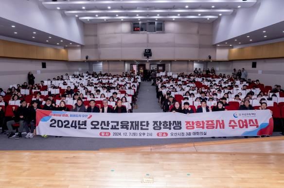 [경기경제신문] 오산시는 지난 7일 오산시청 3층 대회의실에서 2024년 오산교육재단 일반 및 특기장학생 346명에게 총 2억 5천459만 원 상당의 장학증서를 수여했다.