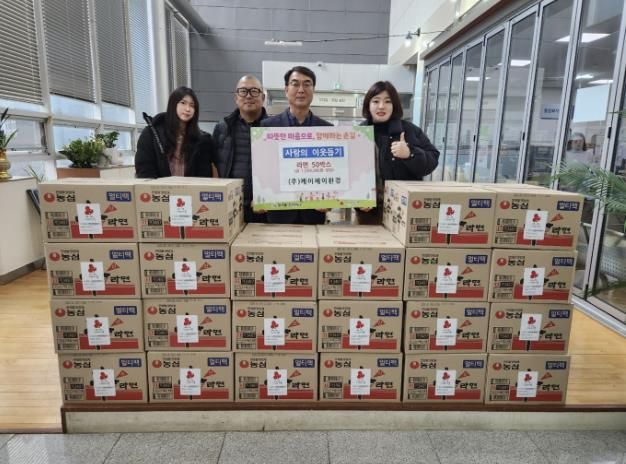 [경기경제신문] ㈜케이제이환경이 연말을 맞아 지역사회공헌 활동의 일환으로 부곡동 주민들을 위해 라면 50박스를 후원했다.