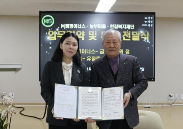 [경기경제신문] (주)캠핑이너스와 농부마을이 한길복지재단과 협력하여 지역사회 나눔을 확대하고 지속 가능한 사회공헌을 실천하기 위해 업무협약(MOU)을 체결하고, 후원 전달식을 진행했다.