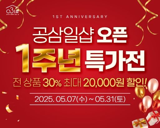 [경기경제신문] 경기도와 경기도주식회사가 운영하는 경기도 사회적경제 쇼핑몰 공삼일샵(031#)이 31일까지 오픈 1주년 기념 온·오프라인 할인 기획전을 진행한다.