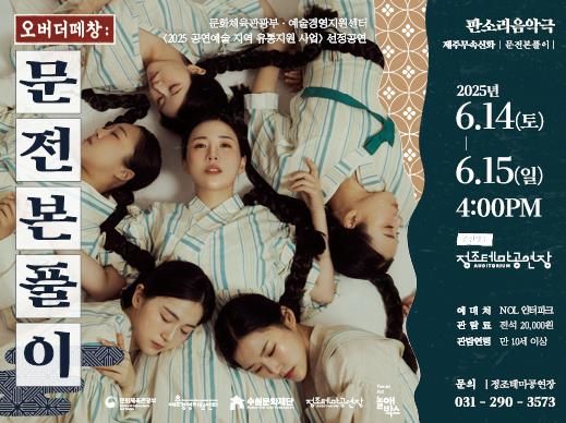가족과 함께 색다른 풍류의 멋을 즐길 수 있는 시간을 가져보자. 6월 14일과 15일 오후 4시 정조테마공연장에서 '오버더떼창: 문전본풀이'이 공연한다. '오버더떼창: 문전본풀이'는 6인의 소리꾼이 판소리 합창을 통해 제주도 신화 ‘문전본풀이’를 들려주는 ‘판소리아지트 놀애박스’의 작품이다. ‘판소리아지트 놀애박스’는 창작자 박인혜를 중심으로 2021년 결성했으며 판소리의 특수성을 살려 전통을 넘어 보다 한국적인 음악극을 만들고 있는 단체다.