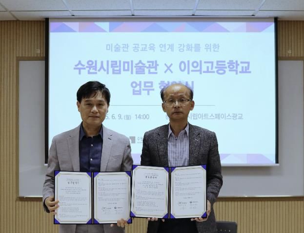[경기경제신문] 경기도 수원시립미술관은 청소년 문화예술교육 활성화를 위해 이의고등학교와 6월 9일 오후 2시, 수원시립아트스페이스광교 문화교육실에서 업무협약을 체결했다.