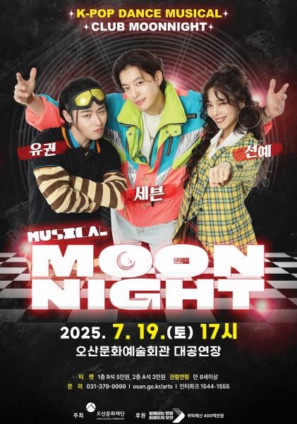 〈문나이트〉는 7월 중 오산문화예술회관 대공연장에서 공연되며, 구체적인 일정과 예매 정보는 오산문화재단 공식 홈페이지 및 예매처를 통해 추후 안내될 예정이다.