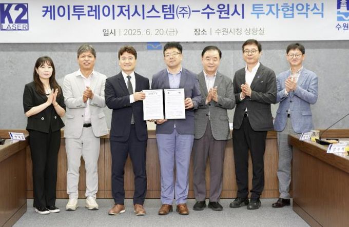 [경기경제신문] 수원시가 산업용 레이저 장비 제조기업인 케이투레이저시스템㈜과 민선 8기 제14호 투자 협약을 체결했다.
