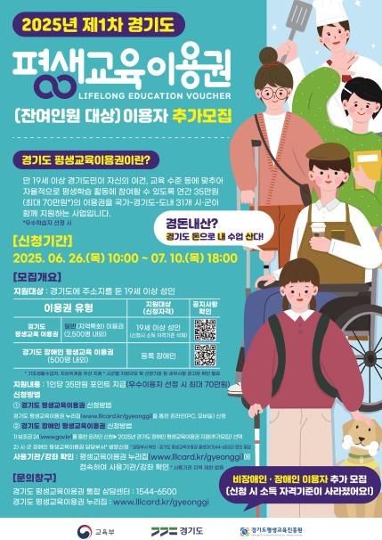 [경기경제신문] 경기도와 경기도평생교육진흥원이 오는 7월 10일까지 ‘2025년 제2차 경기도 평생교육이용권’ 신청을 받는다.