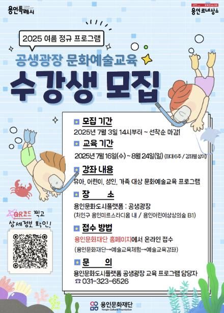 [경기경제신문] 용인문화재단은 7월 3일부터 ‘2025년 용인문화도시플랫폼 공생광장 문화예술교육 프로그램’의 여름 정규 강좌 수강생을 모집한다.