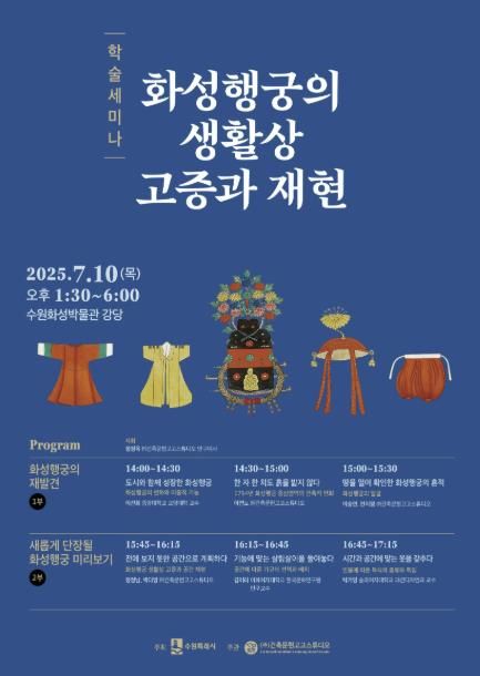 학술 세미나는 ▲화성행궁의 공간 활용 ▲화성지 속 건축 기록 ▲행궁 발굴 조사 결과 ▲1795년 행차 고증 기반 공간계획 ▲신분과 기능에 따른 가구 배치 ▲을묘년 행차 참여자 복식 등을 주제로 한 발표로 진행된다.