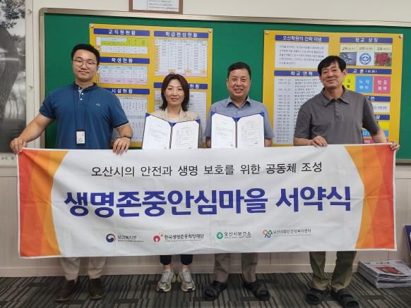 [경기경제신문] 오산시정신건강복지센터 부설 자살예방센터는 7월 4일 오산중학교와 생명존중 문화조성을 위한 생명존중안심마을 사업 서약을 진행했다.