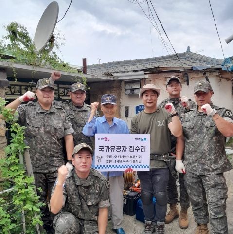 [경기경제신문] 경기북부보훈지청(지청장 손순욱)은 지난 7월 5일, 육군 제1보병사단 소속 독수리봉사단 단원들이 국가유공자 어르신 자택의 노후 지붕 수리 등 주거 환경 개선 사업을 실시했다고 밝혔다.
