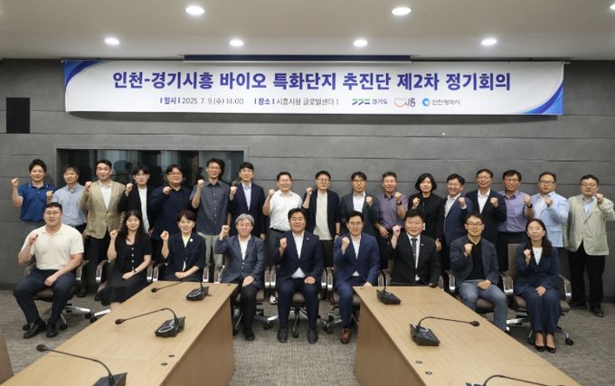 [경기경제신문] 시흥시는 7월 9일 시청 글로벌센터에서 ‘인천-경기시흥 바이오 특화단지 추진단’ 제2차 정기회의를 개최했다. 이날 회의에는 경기도와 인천시를 비롯해 대학, 연구기관, 병원, 기업 관계자 등 40여 명이 참석해 특화단지 간 협력 방안과 공동 전략을 논의했다.