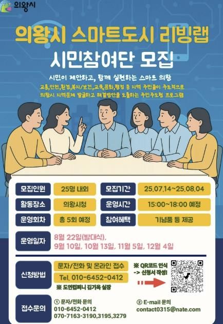 이번 시민참여단의 모집 대상은 의왕시에 거주하는 만 19세 이상의 성인 25명 내외로 지역사회에 관심 있는 시민이라면 누구나 지원할 수 있다.
