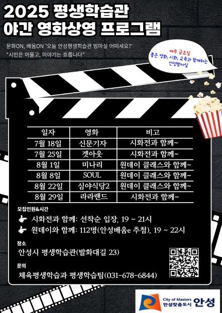 안성시, 2025년 평생학습관 하절기 야간 영화상영 프로그램 개최