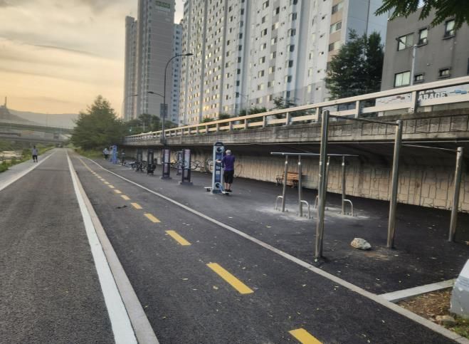 구는 총 1억 3000만원의 예산을 투입해 손곡천에서 동막천까지 약 770m 구간의 보행로와 자전거도로를 재포장하고, 그린교 부근 준설과 징검다리를 이설했다.