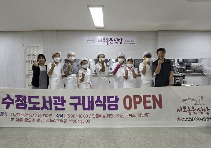 [경기경제신문] 성남시는 성남만남지역자활센터가 7월 1일 성남시 수정도서관 1층에 ‘서로좋은식당 수정도서관점’을 개소하고, 새로운 자활근로사업단의 운영을 시작했다고 18일 밝혔다.