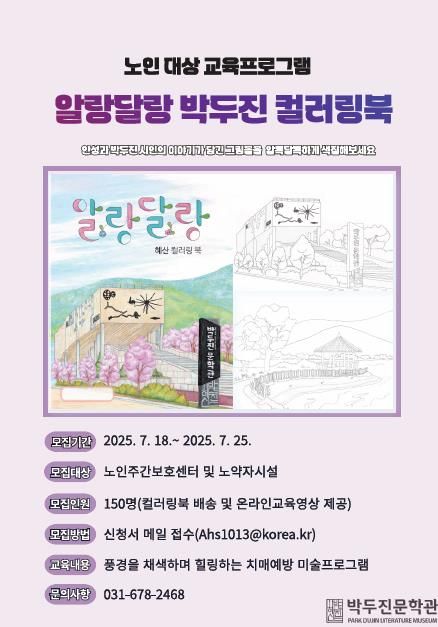 교구재 지원을 희망하는 노인복지시설에서는 7월 18일~7월 25일까지 신청서를 작성하여 제출하면 되고, 자세한 접수 방법은 문학관 홈페이지에 첨부된 안내문을 통해 확인할 수 있다.