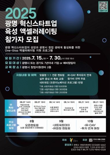 박승원 광명시장은 “이번 액셀러레이팅 지원사업이 유망 스타트업의 성장 가능성을 높이고 지역 경제에 활력을 불어넣는 계기가 되길 바란다”며 “광명시가 스타트업 친화 도시로 자리매김할 수 있도록 창업 생태계 조성에 지속적으로 힘쓰겠다”고 말했다.