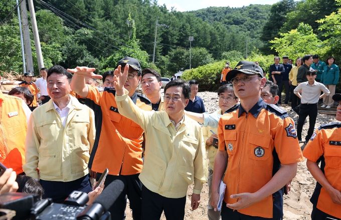김동연 지사는 마을회관에서 현장취재 기자들과 만나 “이번 폭우로 희생되신 분들, 가족분들에게 심심한 위로 말씀을 드린다”면서 “실종자 구조에 최우선 역점을 두고, 전 소방력과 행정력을 동원해서 실종되신 분들 수색작업에 온 힘을 기울이고 있다”고 밝혔다.