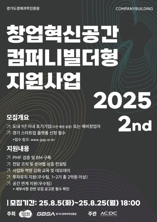 8월 5일부터 8월 25일까지 ‘2025 경기창업혁신공간 컴퍼니빌더형 지원사업’ 2기 참가기업 모집