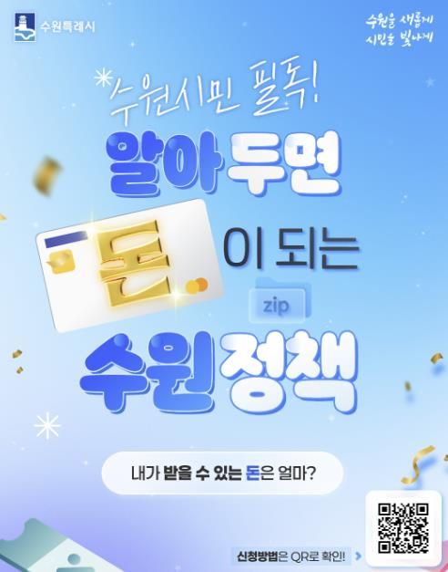 자세한 사항은 수원시 홈페이지'수원소식'시정소식 게시판에서 ‘알아두면 돈이 되는 수원정책’을 검색해 확인하면 된다.