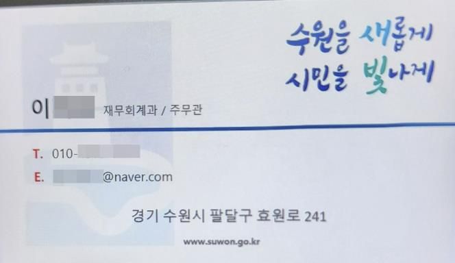[경기경제신문] 수원시에서 인테리어 업체를 운영하는 A씨는 얼마 전 ‘수원시 공무원’이라고 자신을 소개한 사람으로부터 수의계약 공사를 제안받았다. 이 사람은 ‘이OO 수원시청 재무회계과/주무관’이라고 적힌 가짜 명함을 제시하며 접근했고, 공사 수주에 필요하다며 A씨에게 통장사본, 사업자등록증과 계약보증금 명목으로 금전을 요구했다.