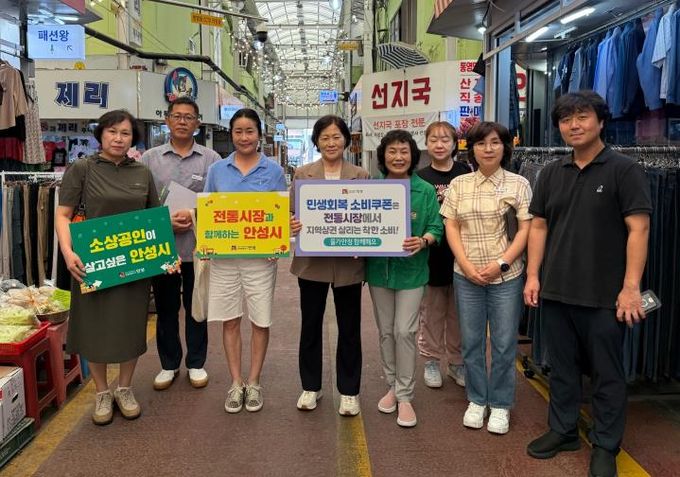 [경기경제신문] 안성시는 지난 5일 경기도 농식품유통과 및 전통시장 상인회와 협력하여 민생회복 소비쿠폰 전통시장 사용 독려 캠페인과 물가안정관리대책 현장 점검을 실시했다고 밝혔다.