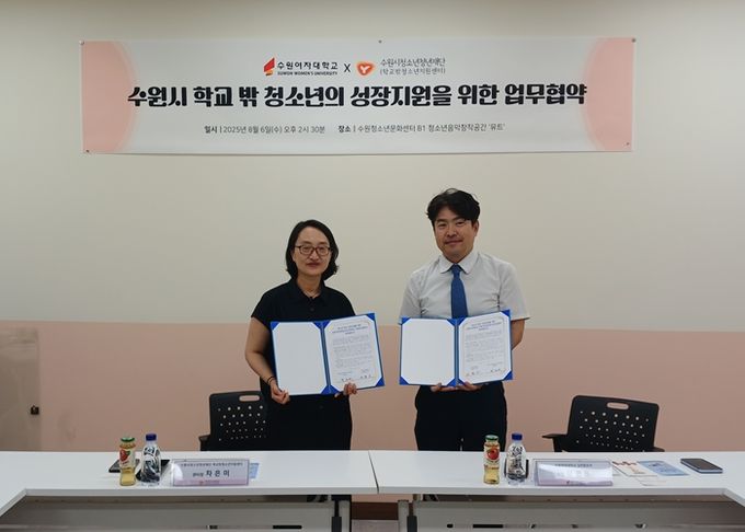 [경기경제신문] 수원시학교밖청소년지원센터(수원시청소년청년재단)는 지난 8월 6일, 수원여자대학교와 함께 학교 밖 청소년의 성장지원을 위한 업무협약을 체결했다.