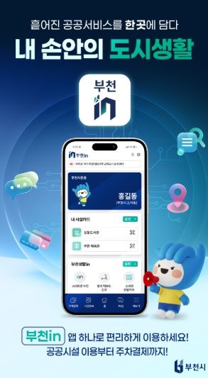 ‘부천in’은 지난 7월 1일부터 운영 중인 부천시민증 기반 스마트도시 통합 플랫폼으로, 공영주차장 자동 할인·무정차 정산, 공공시설 예약, 주민자치 프로그램 신청, 시정 정보 확인 등 다양한 생활서비스를 제공한다.