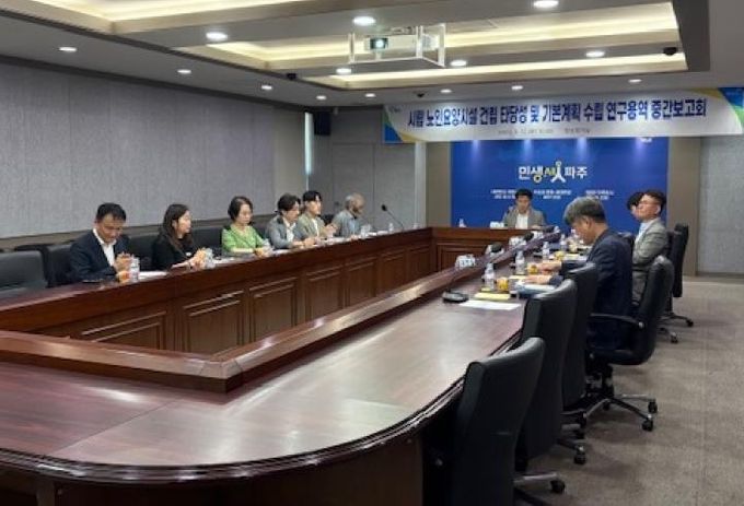 [경기경제신문] 파주시는 지난 12일 2025년 시정목표인 ‘자연친화적 휴양형 공공 노인요양시설 건립’을 위해 ‘시립 노인요양시설 건립 타당성 및 기본계획 수립’연구용역 중간보고회를 개최했다.