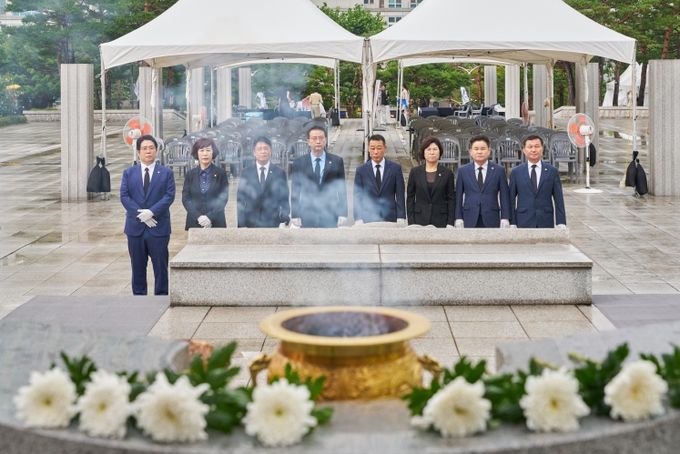 백현종 대표의원은 참배를 마친 후 방명록에 ‘호국영령의 영면을 기원합니다. 광복 80주년을 가슴 깊이 새깁니다’라고 적으며 순국선열의 희생을 기리는 한편, ‘도민’과 ‘민생’을 위한 길을 꿋꿋이 열어내는 도의회 국민의힘의 의지를 결연히 다졌다.