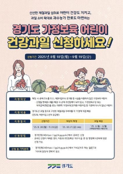 신청은 8월 18일부터 9월 19일까지 진행되며, 온라인 '경기민원24'에서 할 수 있다. 온라인 신청이 어려운 경우, 첨부 서류를 지참하여 아동의 주민등록상 거주지 동주민센터를 방문하면 된다.