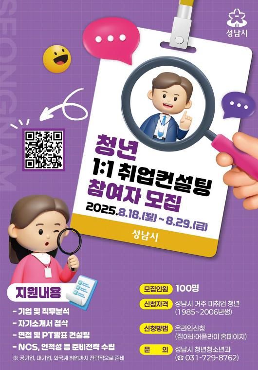 [경기경제신문] 성남시는 미취업 청년 100명에 3개월간 취업 컨설팅을 지원하는 사업을 편다고 19일 밝혔다.