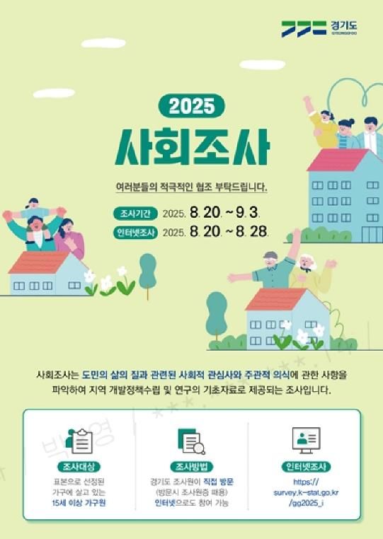 [경기경제신문] 수원시는 8월 20일부터 9월 3일까지 ‘2025년 제13회 수원시 사회조사’를 한다.