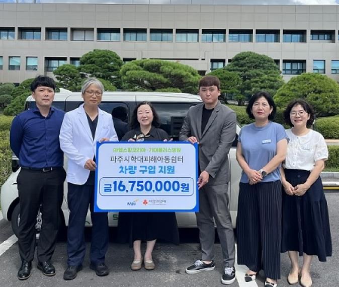 [경기경제신문] 파주시는 지난 19일 ㈜엠스팜코리아 및 기대플러스병원과 함께 파주시 학대피해아동쉼터에 차량(레이 1대) 후원 전달식을 진행했다고 밝혔다.