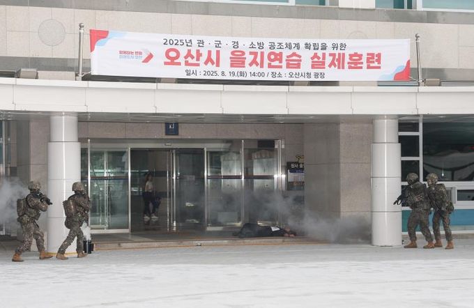 [경기경제신문] 오산시는 지난 19일 오후 2시, 시청 앞 광장에서 관·군·경·소방이 함께하는 ‘2025 을지연습 실제훈련’을 실시했다고 밝혔다.