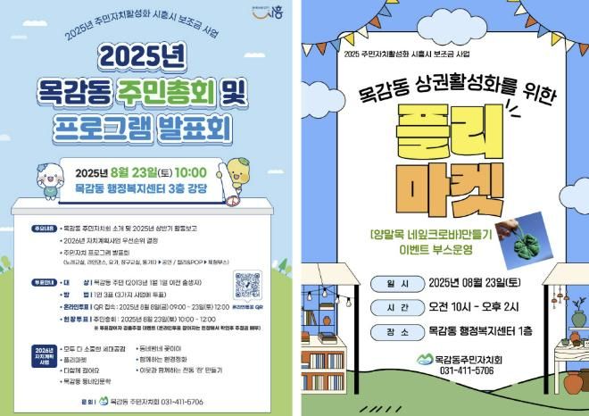 [경기경제신문] 시흥시 목감동 주민자치회는 오는 8월 23일 오전 10시부터 목감동 행정복지센터 3층 강당에서 ‘2025년 목감동 주민총회’를 연다.