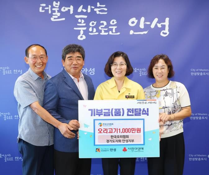 이번 기부는 한국오리협회 안성지부의 첫 기부활동으로 지역사회 내 기업 및 단체들의 따뜻한 나눔 문화 확산에도 긍정적인 영향을 미칠 것으로 기대된다.
