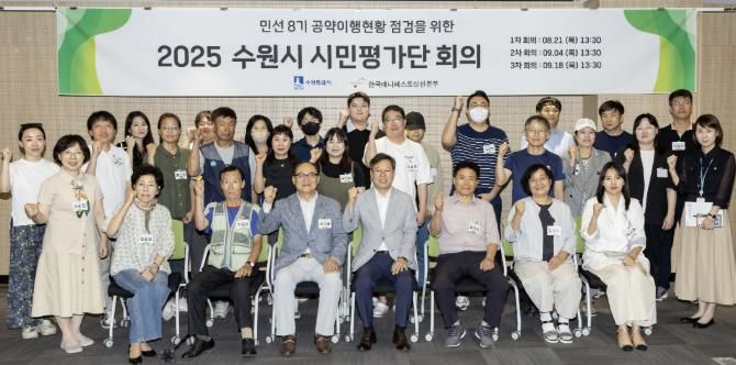 수원시는 21일 수원컨벤션센터 회의실에서 수원시 시민평가단 1차 회의를 열고, 시민평가단 35명에게 위촉장을 수여했다.