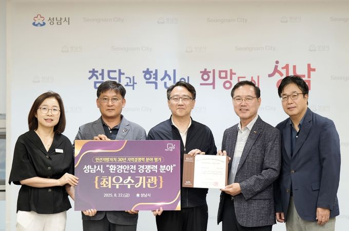 [경기경제신문] 성남시는 한국공공자치연구원이 주최한 ‘민선지방자치 30년 지역경쟁력 평가’에서 환경안전 경쟁력 분야 전국 1위를 차지해 최우수 인증패를 받았다고 25일 밝혔다.