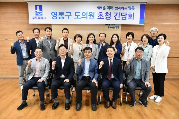 [경기경제신문] 수원시 영통구는 26일 구청 상황실에서 하반기 도의원 간담회를 개최했다. 이번 간담회에는 경기도의회 최종현 의원(더불어민주당 교섭단체 대표), 이오수 의원(국민의힘) ,이호동 의원(국민의힘)과 구청 각 부서장 등 17여 명이 참석해 지역 현안을 공유하고 협력 방안을 논의했다.
