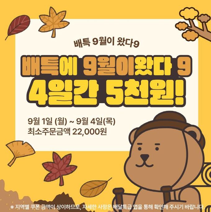 해당 지역 소비자는 배달특급 상단 배너에서 2만 2천 원 이상 주문시 사용 가능한 5천 원 할인 쿠폰을 내려받아 결제 단계에서 적용할 수 있다.