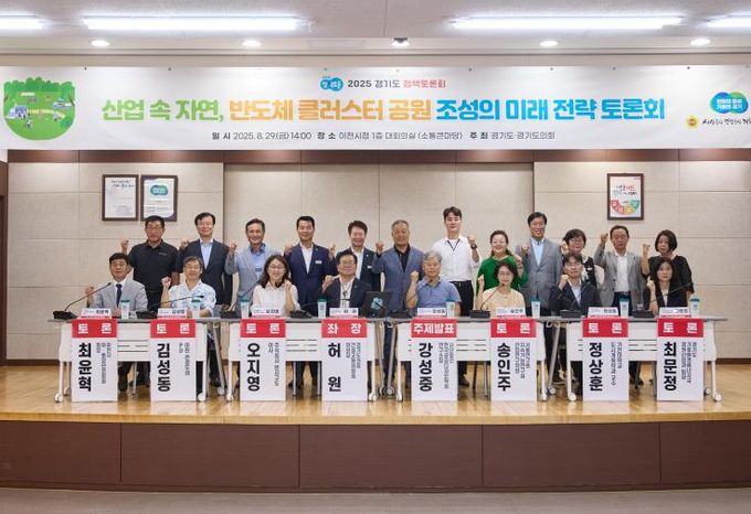 [경기경제신문] 경기도의회 건설교통위원회 허원 위원장(국민의힘, 이천2)이 좌장을 맡은 '산업 속 자연, 반도체 클러스터 공원 조성의 미래 전략 토론회'가 8월 29일 이천시청 대회의실(소통큰마당)에서 성황리에 개최됐다.