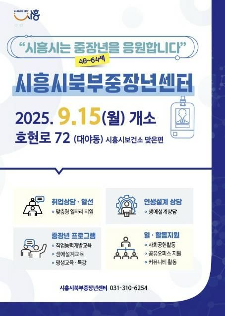 시흥시북부중장년센터는 중장년층을 대상으로 생애 상담, 경력개발, 취업 지원은 물론 사회공헌과 커뮤니티 활동까지 지원하며, 제2의 인생 설계를 통해 사회참여를 확대하고 경제적 안정 기회를 넓혀가는 거점 공간이다. 시는 북부권 구도심에 일자리 기반 시설을 마련해 지역 활력을 높이고, 경기 침체와 미국발 관세 정책 등으로 심화하는 구직·구인난을 완화하기 위해 센터 개소를 추진했다.