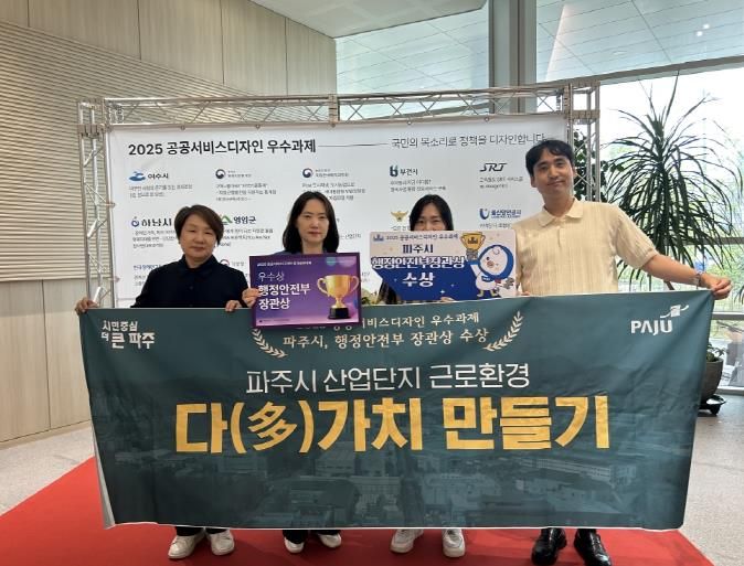 [경기경제신문] 파주시는 행정안전부가 주관하고 한국디자인진흥원이 주최한 ‘2025 공공서비스디자인 성과공유대회’에서 3년 연속 우수과제로 선정되어 행정안전부 장관상을 수상했다고 밝혔다.